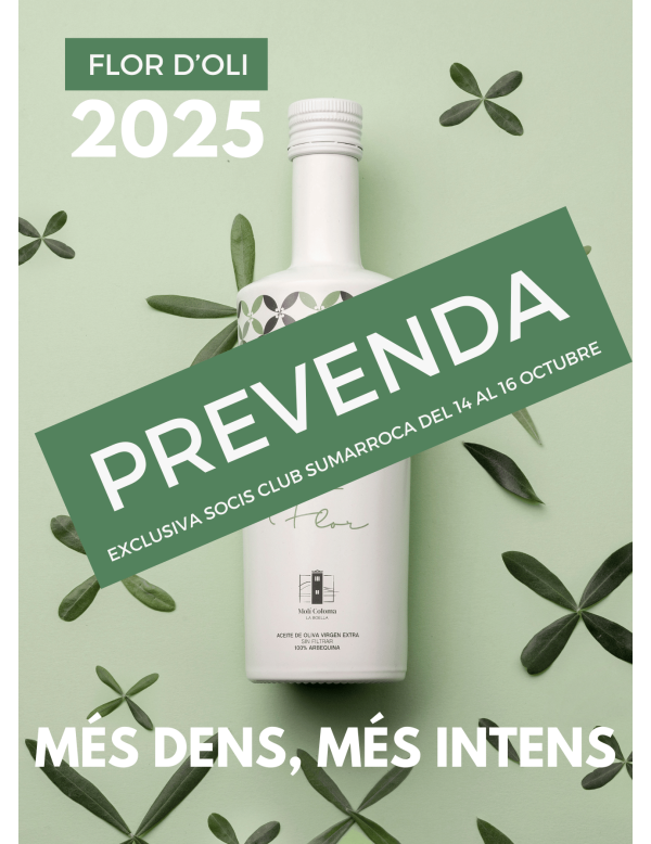 “FLOR D’OLI” es un aceite sin filtrar que se presenta en su estado más natural, puro zumo de aceituna arbequina.
